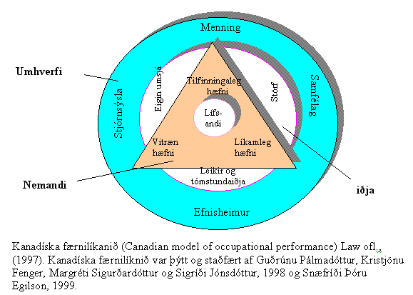 - Kanadíska færnilíkanið er notað sem og líkanið um lífaflfræði til að ramma inn þjónustuna. Iðjan alltaf miðpunkturinn, fleiri faglíkön eru einnig notuð t.d. líkanið um iðju mannsins.